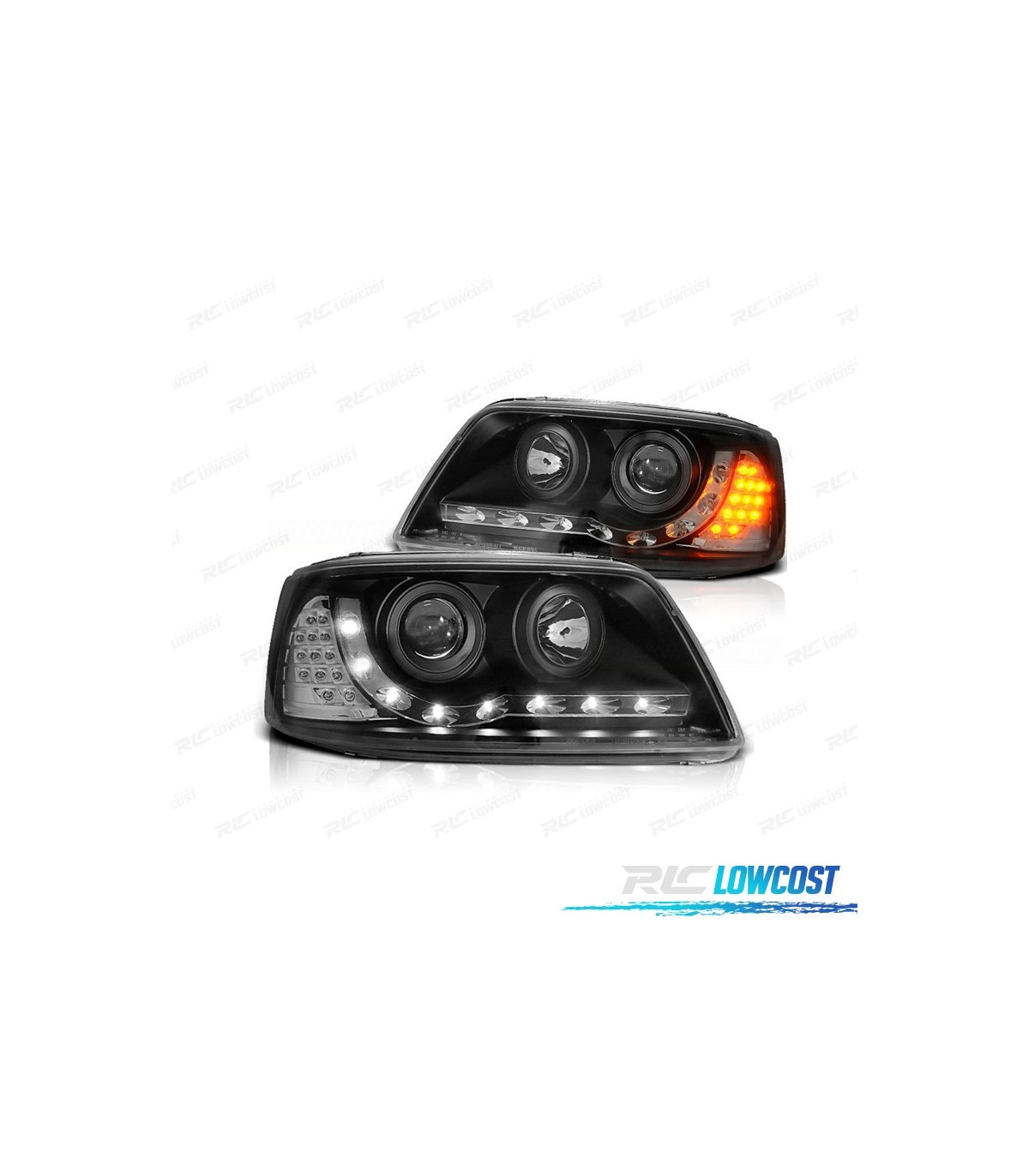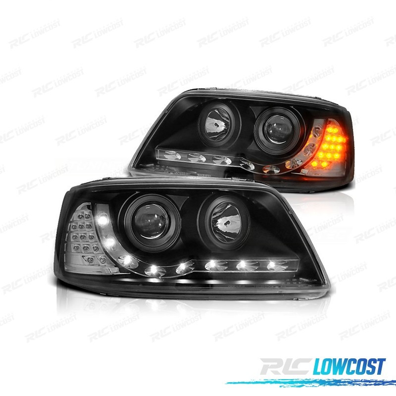 FARÓIS VOLKSWAGEN VW T5 03-09 LUZ DIURNA LED FUNDO NEGRO
