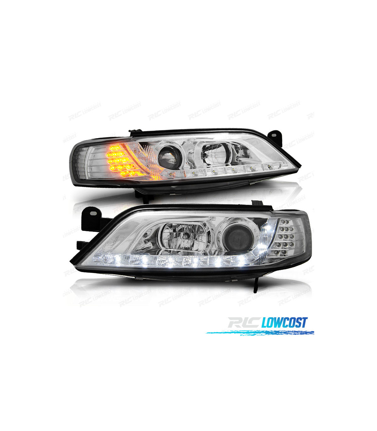 CONJUNTO DE FARÓIS OPEL VECTRA B 96-9 DAYLIGHT INDICADORES LEDS CROMADOS