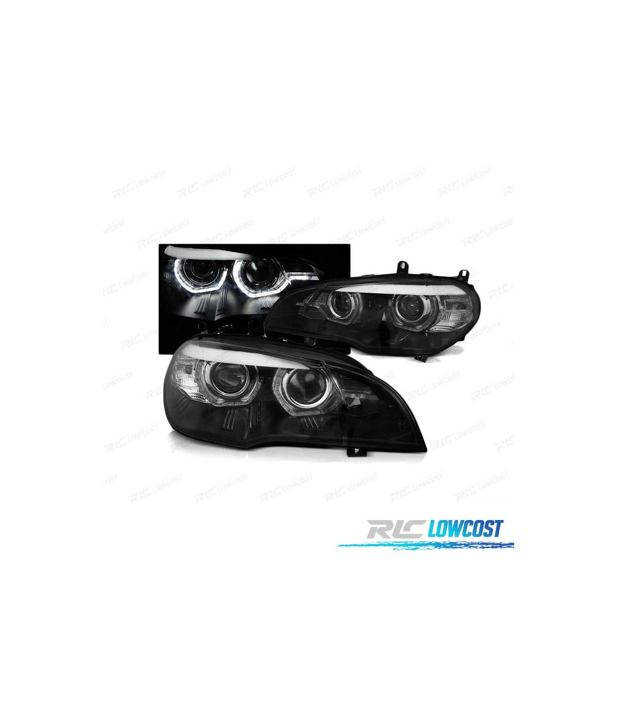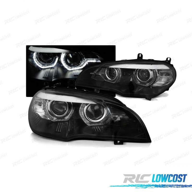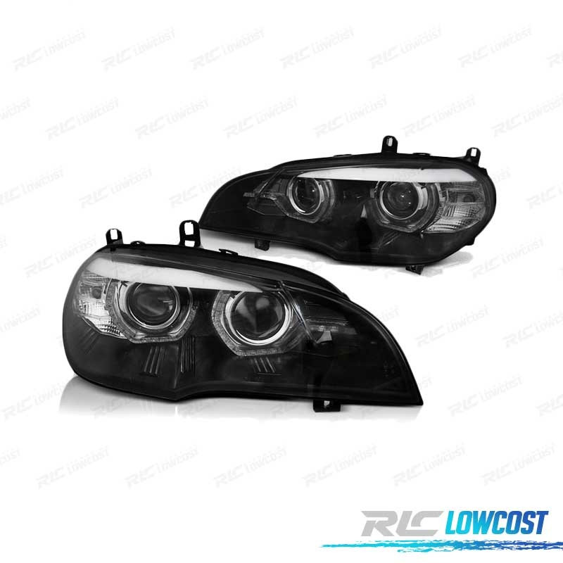 FARÓIS XENON BMW X5 E70 07-10 ANGEL EYES 3D AFS PRETO